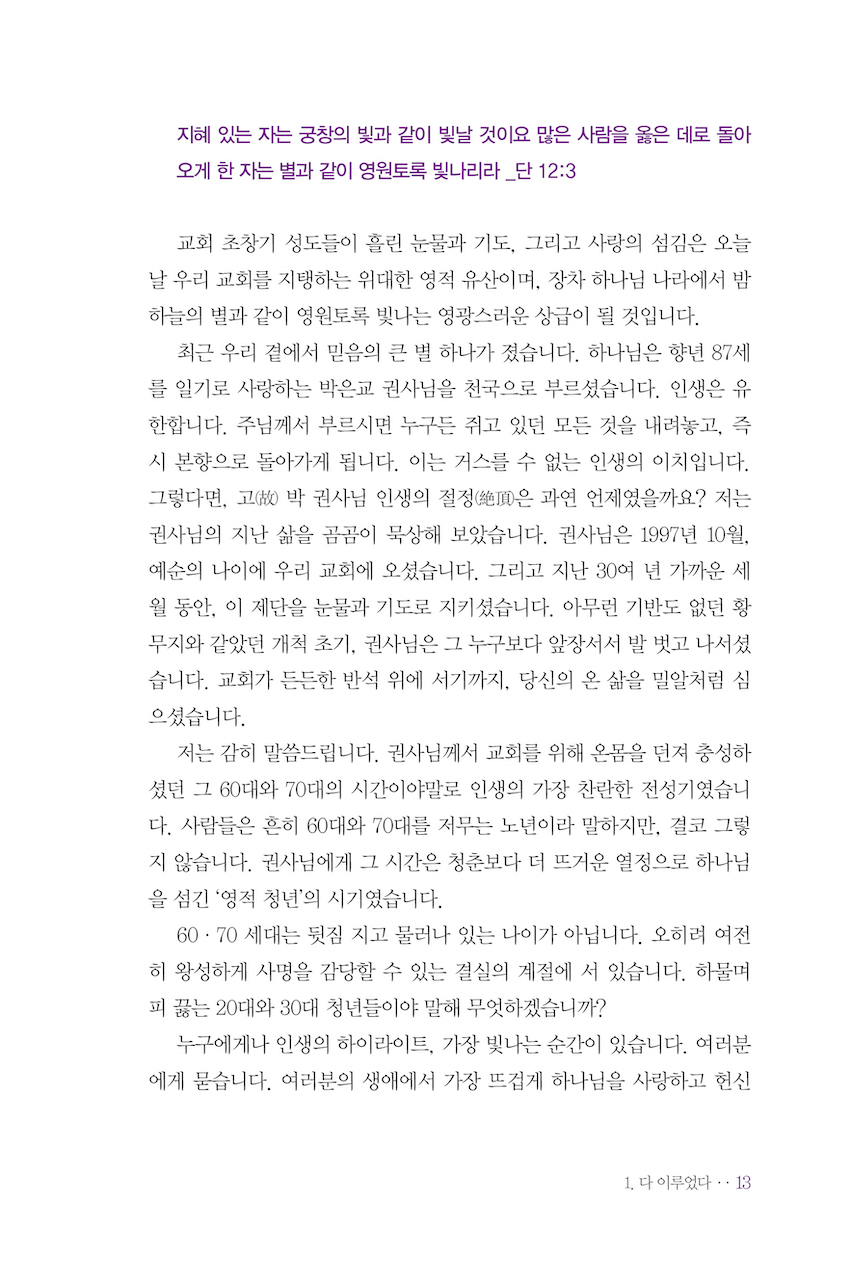 ºÎȰÀº ¸Õ ¹Ì·¡ÀÇ ¸·¿¬ÇÑ ¼Ò¸ÁÀÌ ¾Æ´Ï´Ù. ¿À´ÃÀÇ »î¿¡¼­ Àý¸ÁÀ» Èñ¸ÁÀ¸·Î, µÎ·Á¿òÀ» ȯÈñ·Î ¹Ù²Ù´Â ±¸Ã¼ÀûÀÌ°í ½ÇÁ¦ÀûÀÎ ´É·ÂÀÌ´Ù. ¿¹¼ö ±×¸®½ºµµ´Â ºÐ¸íÈ÷ ¼±Æ÷Çϼ̴Ù. ¡°¹Ï´Â ÀÚ´Â ¿µ»ýÀ» °¡Á³³ª´Ï.¡± ºÎȰÀ» ¹Ï´Â »ç¶÷Àº Á׾ ºñ·Î¼Ò ¿µ»ýÀ» ¾ò´Â Á¸Àç°¡ ¾Æ´Ï¶ó, ÀÌ¹Ì ¿µ¿øÇÑ »ý¸íÀ» ¼ÒÀ¯ÇÑ Ã¤ ¿À´ÃÀ» »ì¾Æ°¡´Â »ç¶÷ÀÌ´Ù. ±×·¸±â¿¡ ºÎȰÀº ¿ì¸®ÀÇ ¿µ¿øÇÑ ¿î¸íÀ» °áÁ¤Áþ´Â µ¿½Ã¿¡, Áö±ÝÀ» »ì¾Æ°¥ ÈûÀÌ µÈ´Ù. ºÎȰ ½Å¾ÓÀº Á×À½ ÀÌÈĸ¦ À§ÇÑ À§·Î¿¡ ¸Ó¹°Áö ¾Ê°í, ¿À´ÃÀÇ µÎ·Á¿òÀ» À̱â°Ô ÇÏ°í ¿À´ÃÀÇ »îÀ» ¼Ò¸Á °¡¿îµ¥ °È°Ô ÇÑ´Ù.